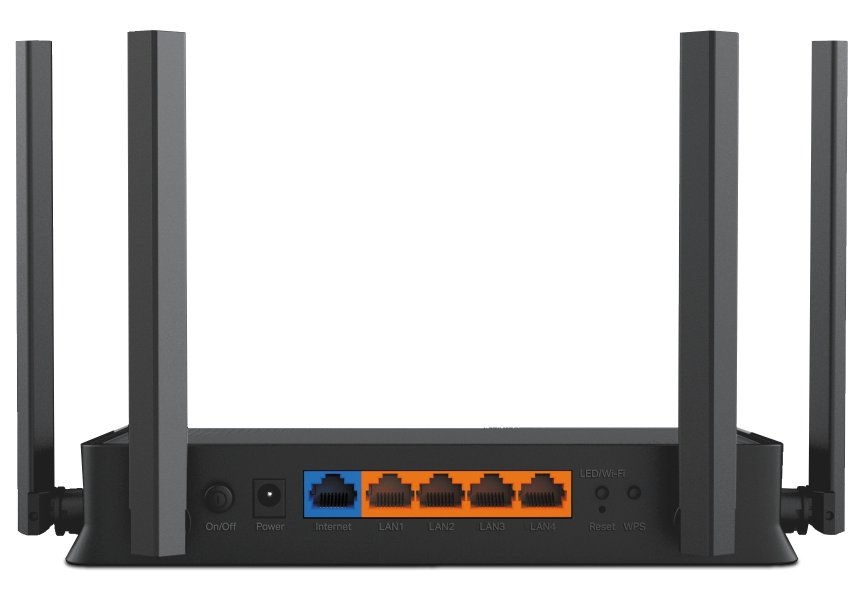 Router nabízí kombinovanou rychlost až 3,6 Gbps (2882 Mbps na 5 GHz + 688 Mbps na 2,4 GHz) a je vybaven 4 vysoce výkonnými externími anténami s technologií Beamforming pro optimální pokrytí. Kompletní gigabitová konektivita zahrnuje 1× WAN port a 4× LAN porty s rychlostí 1 Gbps každý.