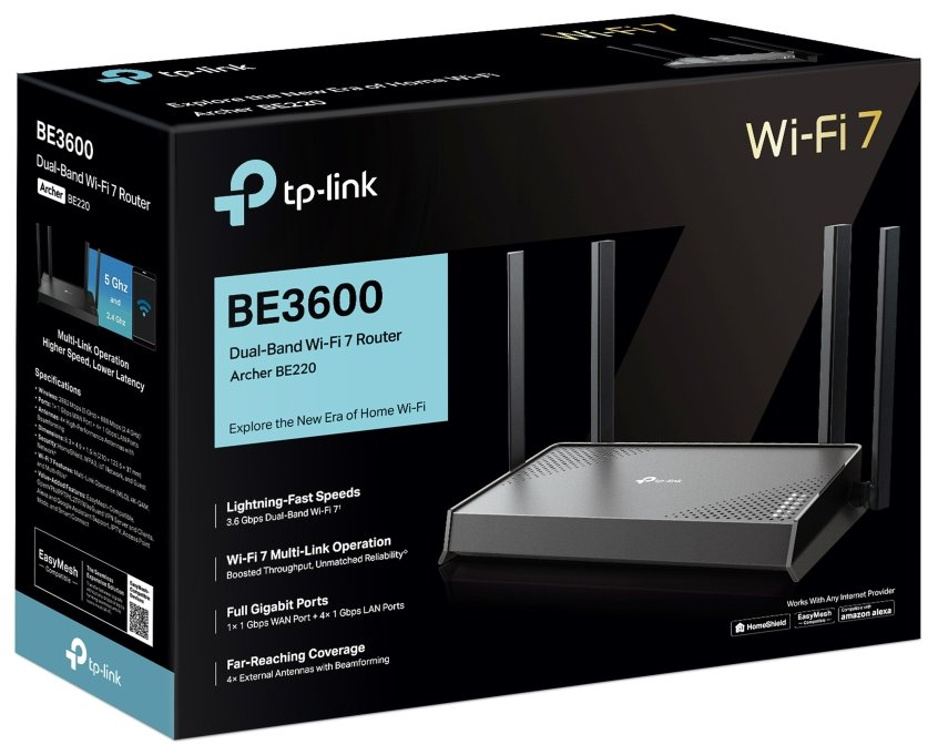Archer BE220 představuje novou generaci domácích routerů s podporou nejnovějšího standardu Wi-Fi 7 (802.11be). Díky pokročilé Multi-Link Operation (MLO) technologii dokáže současně využívat oba frekvenční pásma 2,4 GHz a 5 GHz pro komunikaci s kompatibilními zařízeními, což výrazně zvyšuje rychlost, snižuje latenci a zlepšuje celkovou spolehlivost připojení.