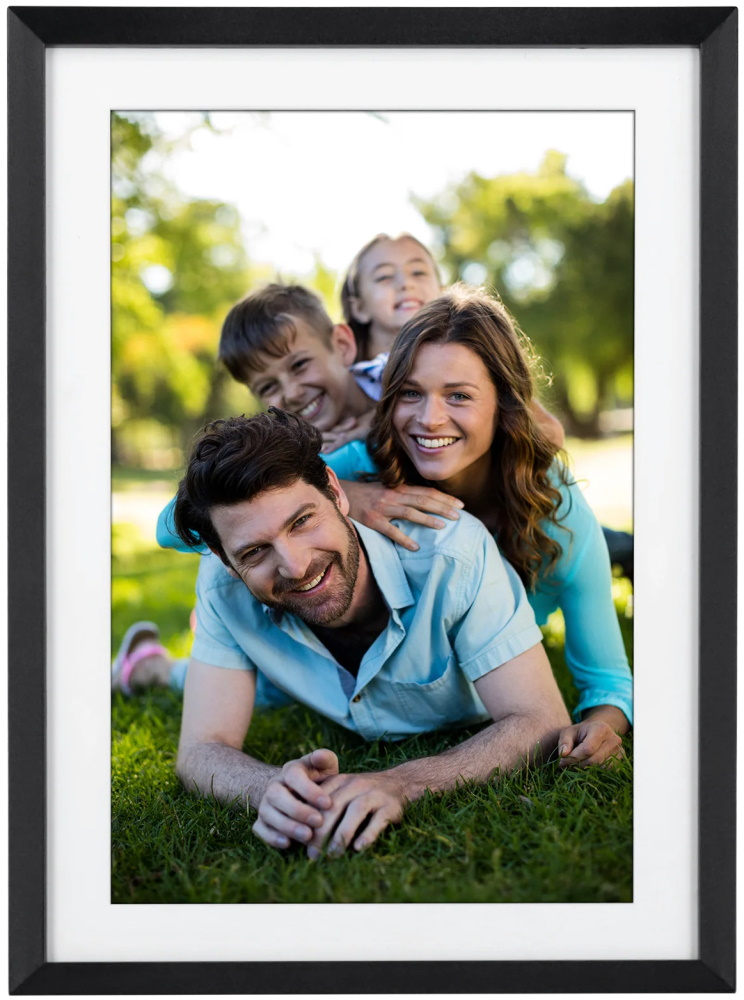 S 32GB interní pamětí pojme tisíce fotografií a videí do délky 15 sekund. Stylový černý rámeček s bílým paspartu se hodí do každého interiéru a lze jej umístit horizontálně i vertikálně, ať už jako stojící dekoraci nebo zavěšený na stěně.