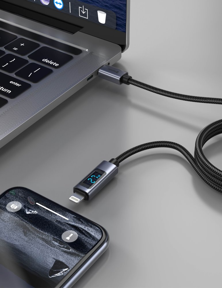 LCD displej integrovaný přímo v kabelu vám poskytuje okamžité informace o aktuálním výkonu nabíjení. Díky tomu můžete snadno kontrolovat, zda vaše zařízení využívá maximální možný výkon nabíjení.