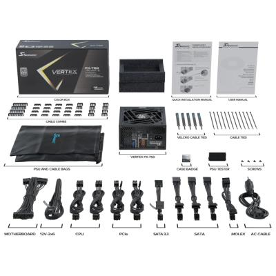 Napájecí zdroj o výkonu 750 W je osazen tichým a přitom výkonným 135mm ventilátorem. Zdroj splňuje certifikaci 80PLUS Platinum, standard ATX 3.1 a má plně odpojitelné kabely.