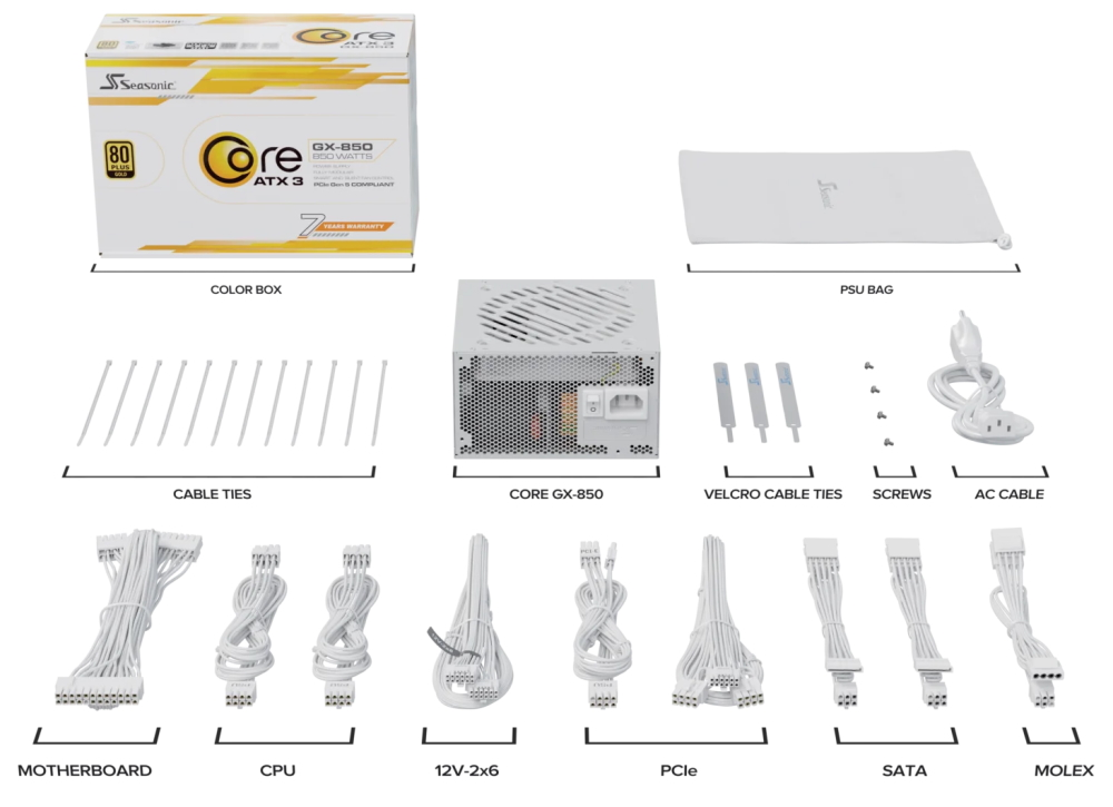 Napájecí zdroj Seasonic Core GX-850, který s přehledem zvládne náročné pracovní sestavy nebo herní PC s výkonnými grafickými kartami. Dosahuje výkonu 850 W a podporuje nejnovější standardy ATX 3.1 a PCIe 5.1. Díky tomu je vhodný zejména do sestav, které jsou osazeny moderními komponenty. Zdroj Seasonic Core GX-850 dále splňuje certifikaci 80 PLUS Gold, což znamená, že nabízí vysoký výkon a stabilitu při zachování nízké ztráty energie a míry zahřívání.