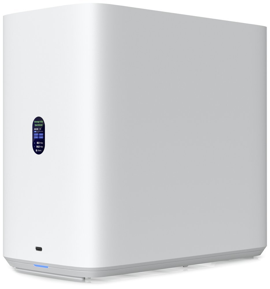 UniFi Network Attached Storage představuje moderní řešení pro ukládání dat s podporou až čtyř 2,5" nebo 3,5" pevných disků a dvou M.2 NVMe SSD slotů pro cache paměť. Zařízení je vybaveno výkonným čtyřjádrovým ARM® Cortex®-A55 procesorem s frekvencí 1,7 GHz a 4 GB operační paměti.