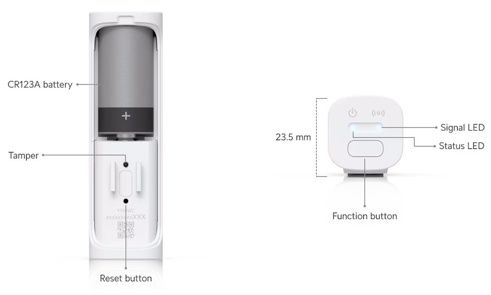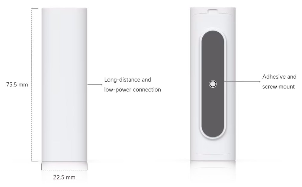 UniFi Entry Sensor je kompaktní bezdrátové zařízení určené pro sledování otevření a zavření dveří nebo oken v rámci ekosystému UniFi Protect. Senzor využívá proprietární technologii SuperLink s provozní frekvencí 865,1–869,5 MHz a nabízí impozantní dosah až 2 km. Díky úspornému režimu a kvalitní lithiové baterii CR123A dosahuje výdrže až 6 let při standardním použití.