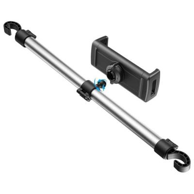 Systém uchycení mezi opěrkami hlavy zajišťuje rychlou instalaci bez nutnosti nástrojů. Délka až 53 cm se přizpůsobí různým vzdálenostem mezi opěrkami v různých typech automobilů.