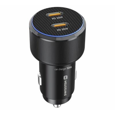 Kompaktní nabíječka do automobilu umožňuje současné nabíjení dvou zařízení s celkovým výkonem až 50 W. Port USB-C poskytuje výkon až 20 W, zatímco druhý port USB-C nabízí až 30 W – ideální kombinace pro rychlé nabíjení telefonu společně s tabletem nebo notebookem.