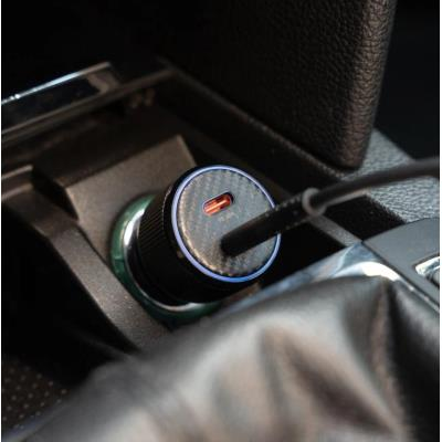 Vestavěný modrý LED kroužek usnadňuje připojení kabelů i při jízdě v noci nebo v tmavém interiéru vozu. Nabíječka je vyrobena z kvalitního ABS plastu a polykarbonátu, přičemž její kompaktní rozměry a hmotnost pouhých 26 g zajišťují pohodlné používání bez narušení prostoru v automobilu.