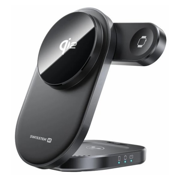 Nabíječka SWISSTEN MagBase kombinuje pokročilý standard Qi2 s praktickou skládací konstrukcí. Díky magnetickému vystředění kompatibilnímu s MagSafe zajišťuje perfektní zarovnání a stabilní nabíjení výkonem až 15 W pro iPhone. Kompaktní tělo v matně černém provedení s tmavě šedými detaily působí prémiově na pracovním stole i na cestách.
