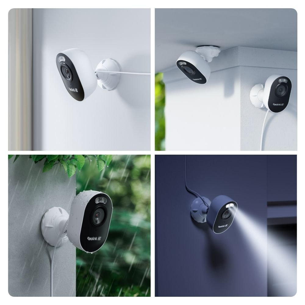 Reolink Lumus Series E450 je kompaktní Wi-Fi kamera vybavená 8Mpx CMOS senzorem s rozlišením 3840 × 2160 px při 15 fps. Díky světelné cloně F1.6 a barevnému nočnímu vidění s reflektory zachytí jasné a detailní záběry i za šera. Infračervené LED (850 nm) poskytují noční vidění až do vzdálenosti 10 m.