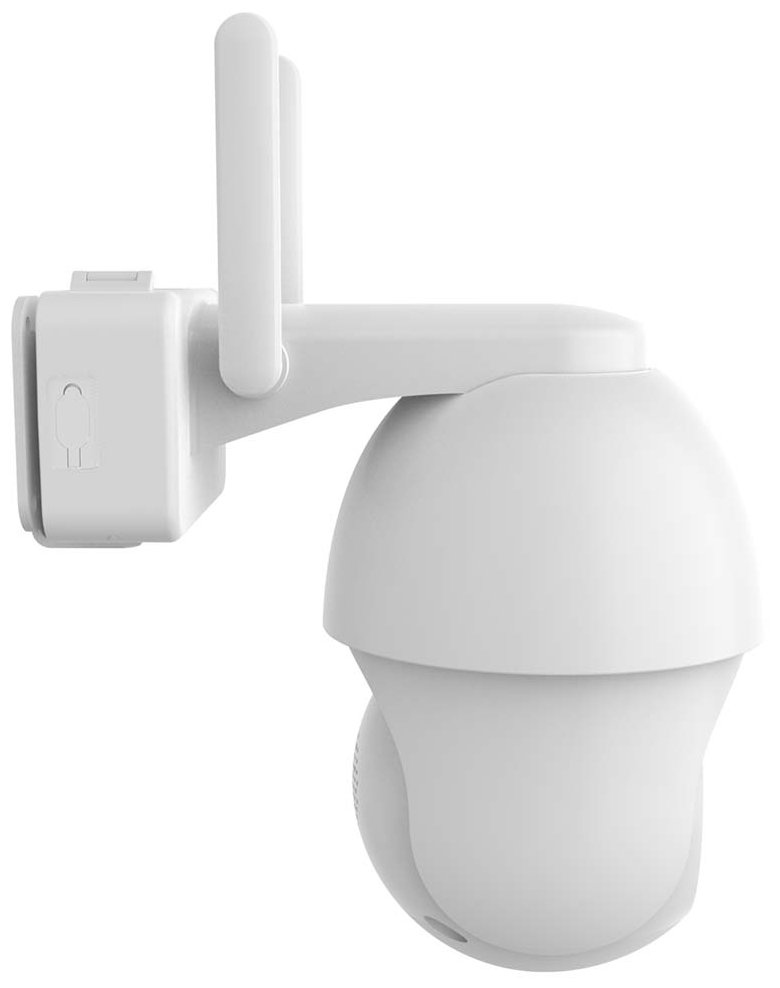 Kamera disponuje pokročilými funkcemi včetně PTZ mechanismu s otáčením 355° a náklonem 100°, kombinovaným nočním viděním s infračervenými LED i barevným režimem s reflektorem do vzdálenosti 10 m. Integrovaný PIR senzor detekuje pohyb a spouští záznam, reflektor nebo sirénu. Obousměrná komunikace s potlačením šumu umožňuje mluvit s osobami v okolí kamery.