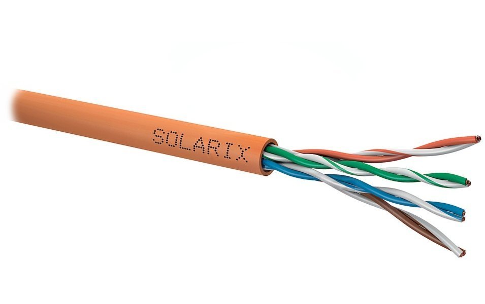 Instalační kabel Solarix CAT5E UTP s typovým označením SXKD-5E-UTP-LSOHFR-B2ca je určený pro provoz ethernetových protokolů včetně 2.5GBase-T a 5GBase-T. Kabel disponuje konstrukcí U/UTP se čtyřmi páry vodičů vyrobených z kvalitního měděného drátu s čistotou mědi 99,97 % a průměrem 0,5 mm (AWG 24). Izolace vodičů je provedena z materiálu HDPE s výsledným průměrem vodiče s izolací 0,88 mm.