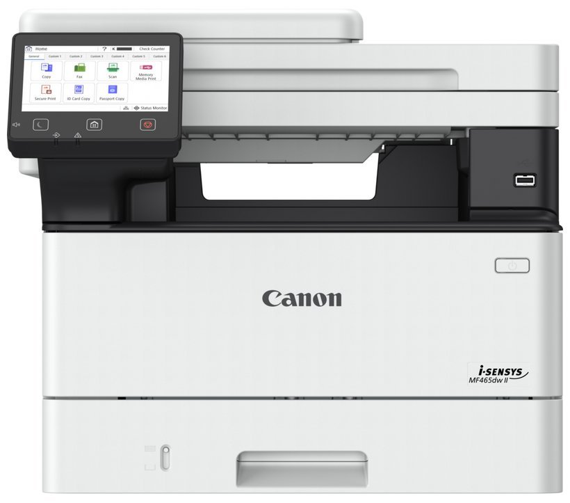 Multifunkční zařízení Canon i-SENSYS MF465dw II kombinuje rychlý černobílý laserový tisk až 40 str./min s pokročilými funkcemi kopírování, skenování a faxování. Vybaveno oboustranným automatickým podavačem dokumentů na 50 listů umožňuje efektivní zpracování vícestránkových dokumentů s rychlostí skenování až 100 obr./min v černobílém režimu.