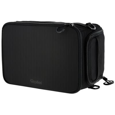 Vnitřní prostor s objemem přibližně 9 litrů poskytuje dostatečnou ochranu pro fotoaparáty a objektivy. Flexibilní přepážky a elastické popruhy zajišťují, že vybavení zůstane na svém místě a je chráněno před poškozením během transportu. Přístup k technice je řešen horním celootevíracím víkem, ale navíc disponuje praktickým bočním rychlým přístupem, který umožňuje vyjmout fotoaparát, aniž byste museli brašnu celou otevírat nebo pokládat na zem.