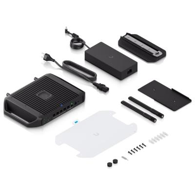 Robustní router UniFi s 10Gbit rozhraním, PoE+++ porty a integrovanou Wi-Fi 7, určený do náročného průmyslového prostředí (prach, vibrace, teplotní výkyvy).