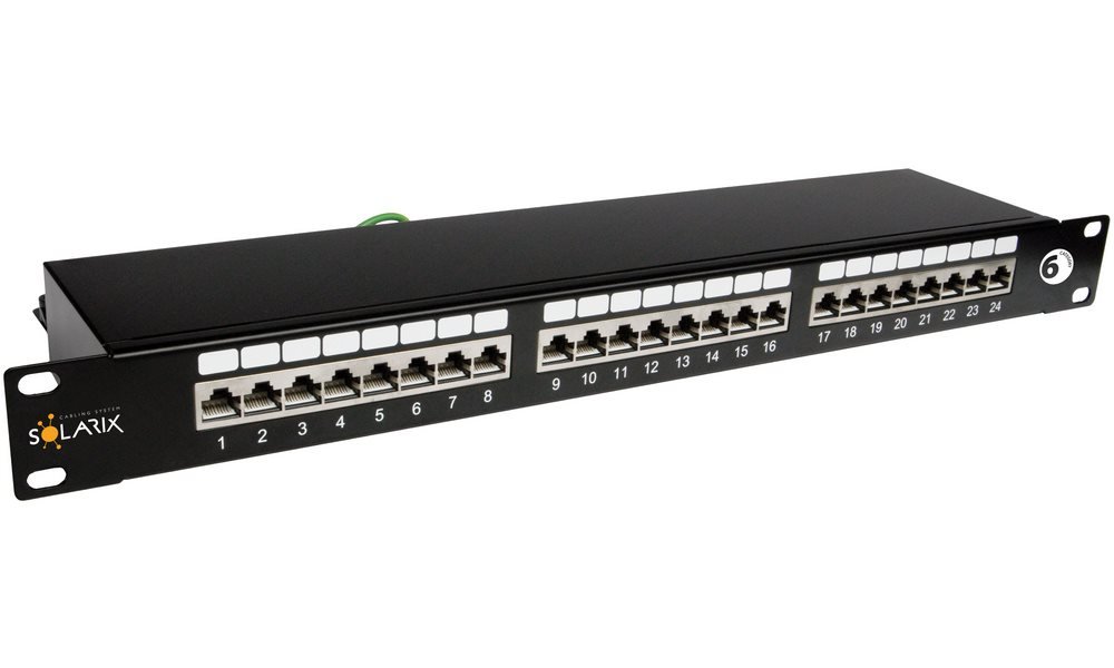Stíněný patch panel nabízí 24 portů.
