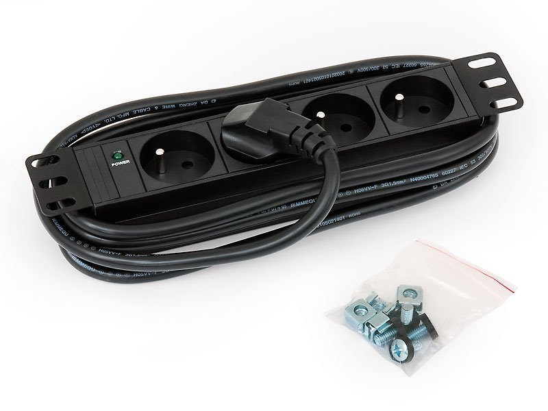 10" rozvodný panel s diodovou kontrolkou a čtyřmi zásuvkami podle ČSN, max. 16 A. Kabel je 2 m dlouhý s univerzální CZ-DE zástrčkou.